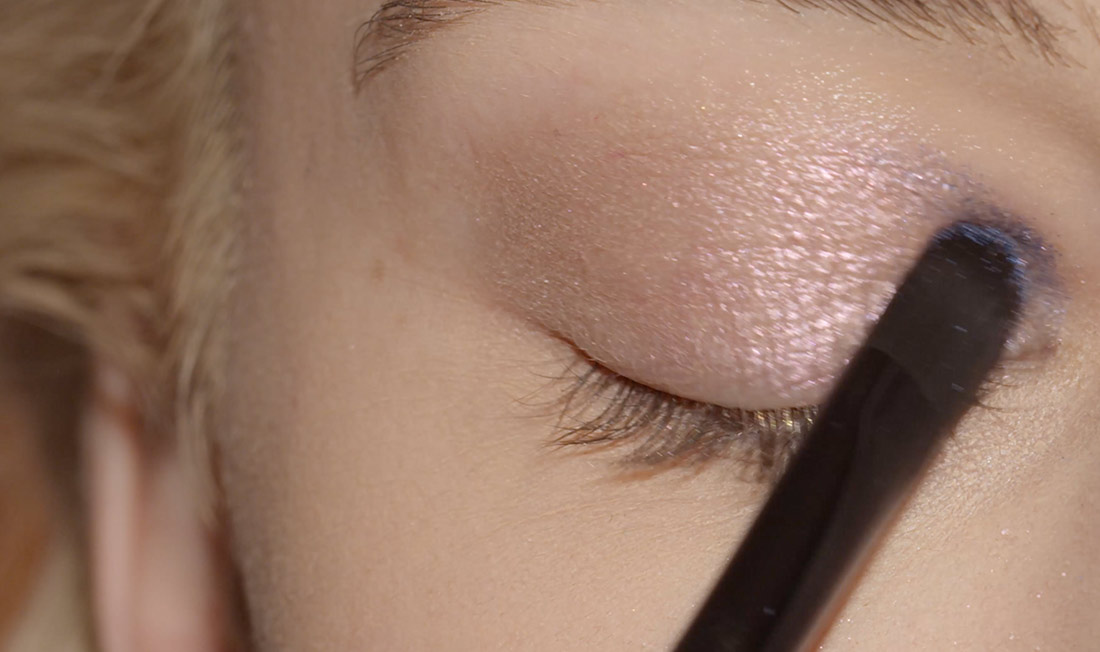 Hozzon létre egy rózsaszín alapot a szemen! Ehhez használja a lapos Yves Rocher szemhéjecsetet, és építse a Celesé árnyalatot az egész mozgó szemhéjra!