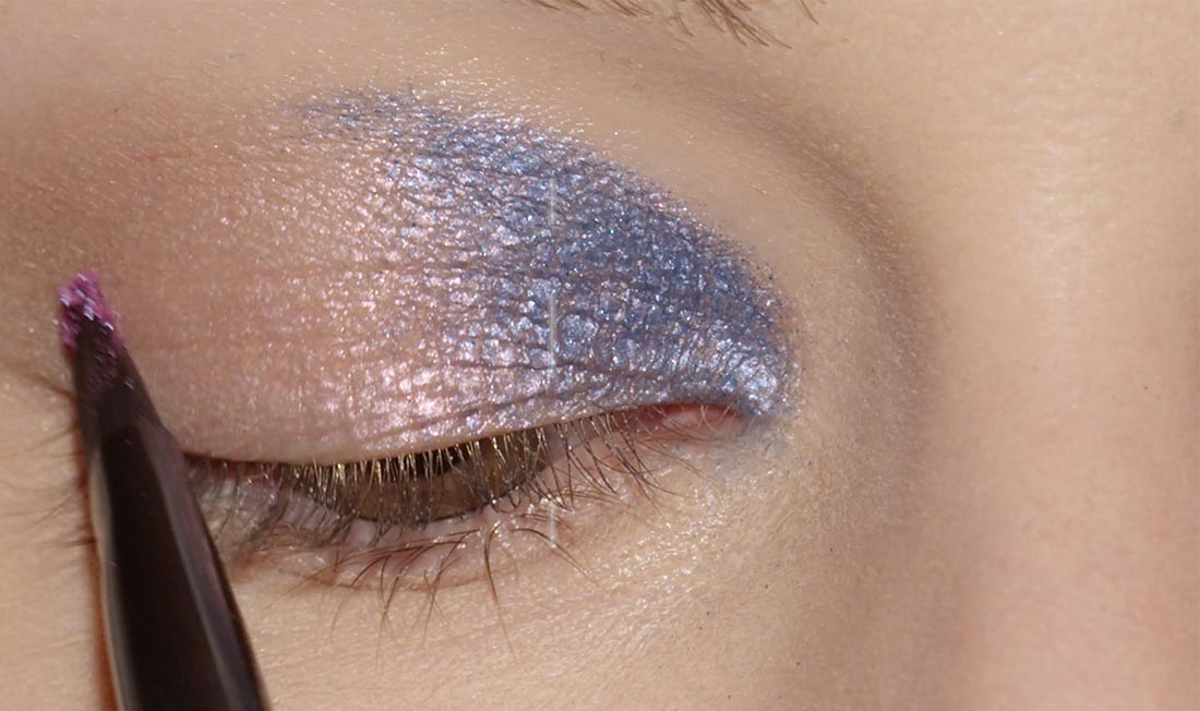 Applikálja az ezüstkék Turquoise árnyalatot az alsó szempillasor vonalán végig.