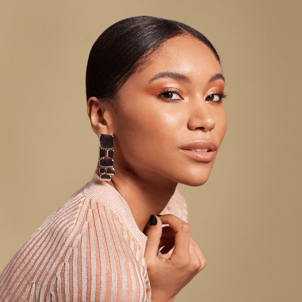Ehhez az ünnepi sminkhez azt javasoljuk, hogy koncentrálj a bőröd tónusának kiemelésére. Vigyél fel egy kis mennyiségű Alapozót városi hatások ellen, amely a szennyezésgátló hatása mellett ragyogóvá teszi az arcbőrt, miközben védi a külső káros hatásoktól. A számodra legmegfelelőbb árnyalat kiválasztásához egyszerűen nézd meg a csukló belső oldalán található ereket. Ha kékek, akkor bézs árnyalatot kell választani; ha lilásak, akkor rózsaszínűt, és ha zöldek, akkor aranyszínűt. Hogy kiemeld arcod vonalait, használd Highlighter stickünket.
