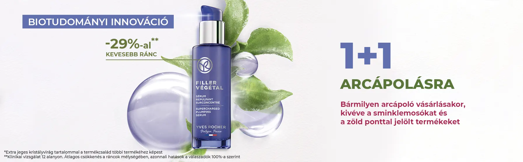 Az új Filler Végétal termékcsaládhoz Yves Rocher botanikusok és növénykozmetikai tudósok kifejlesztették és optimalizálták a botanikai krioextrakciót, azt a hideg extrakciós eljárást, amely lehetővé teszi, hogy a friss növény minden erejét felszabadítsa és koncentrálja, miközben megőrzi hatóanyagait.