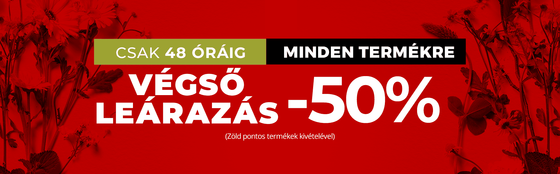 Az ajánlat a FINAL50 kedvezménykóddal érvényesíthető. Az ajánlat 13.999 Ft feletti vásárlásokra érvényes, és nem vonatkozik a zöld ponttal jelölt termékekre. A kedvezményt a katalógus árakból számítjuk ki. Nem vonható össze más kedvezményekkel, különleges ajánlatokkal és akciókkal. Az ajánlat 2021. 08. 25. 23.59:59-ig érvényes.