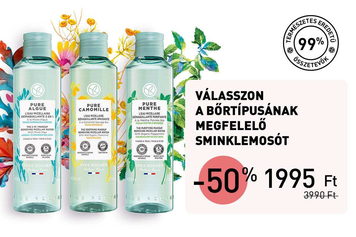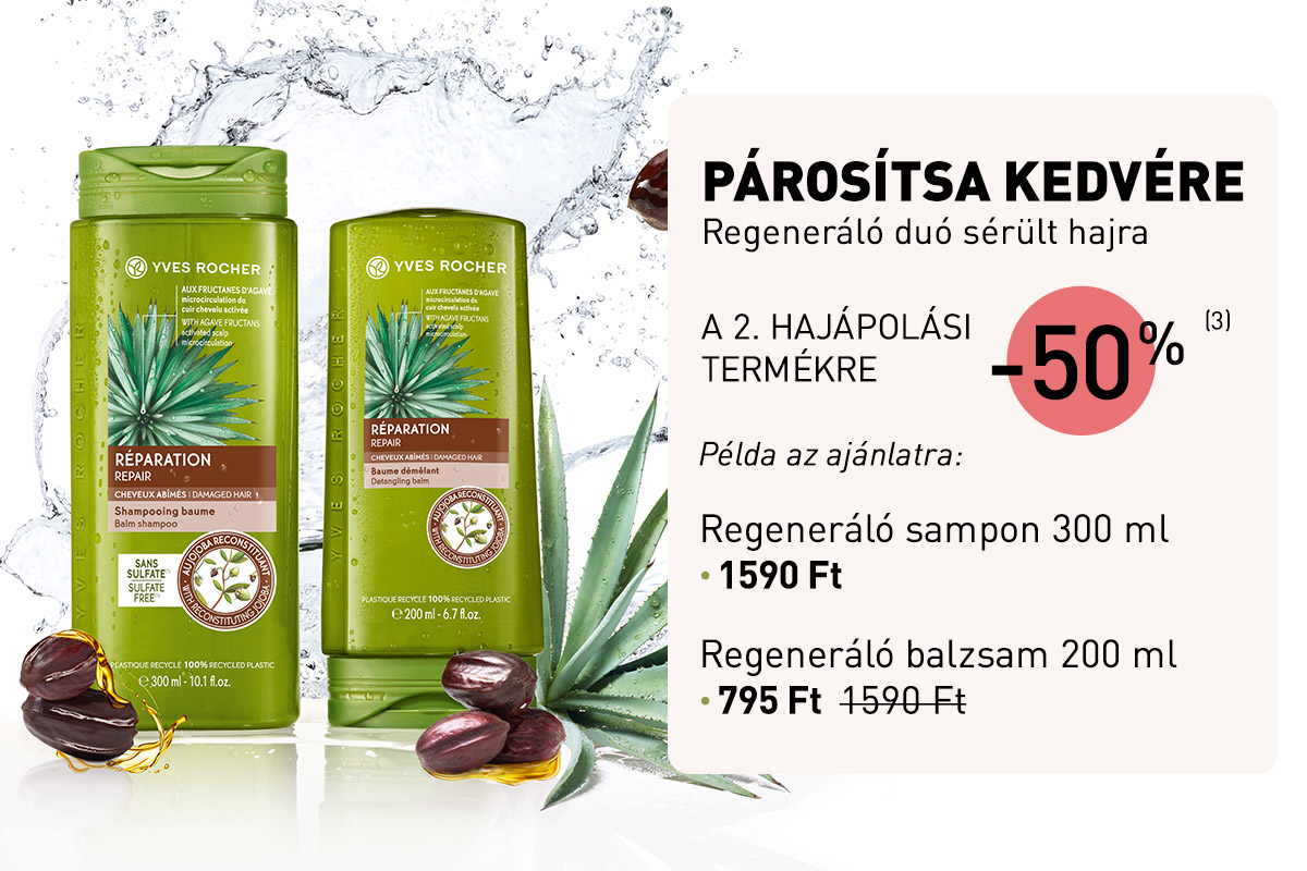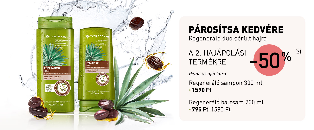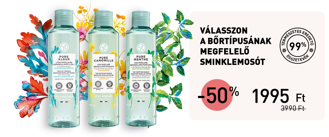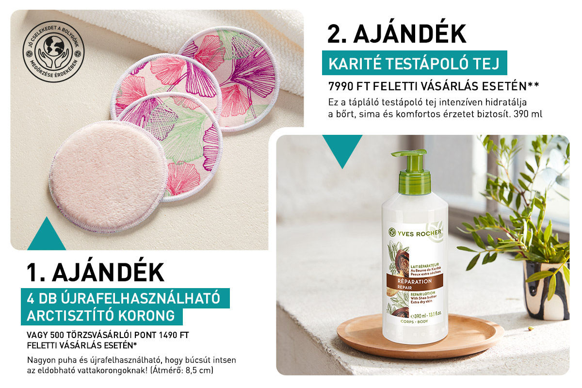 (1) Az Yves Rocher Hungary Kft. által ajánlott eredeti, nem akciós fogyasztói árakból. Az ajánlat más kedvezményekkel nem összevonható és nem vonatkozik a Zöld Ponttal jelölt termékekre.
