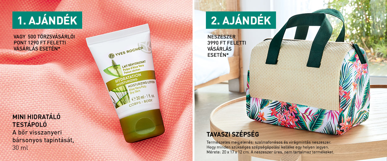 * A mini hidratáló testápoló legalább 1290 Ft feletti szépségápolási termék vásárlása esetén adható vásárlónként egy alkalommal a készlet erejéig, vagy az 1290 Ft feletti vásárlás esetén járó meglepetés ajándék helyett ajándék 500 törzsvásárlói pont kérhető, melyet a vásárlás után írunk jóvá. Az ajánlat más kedvezményekkel nem összevonható.