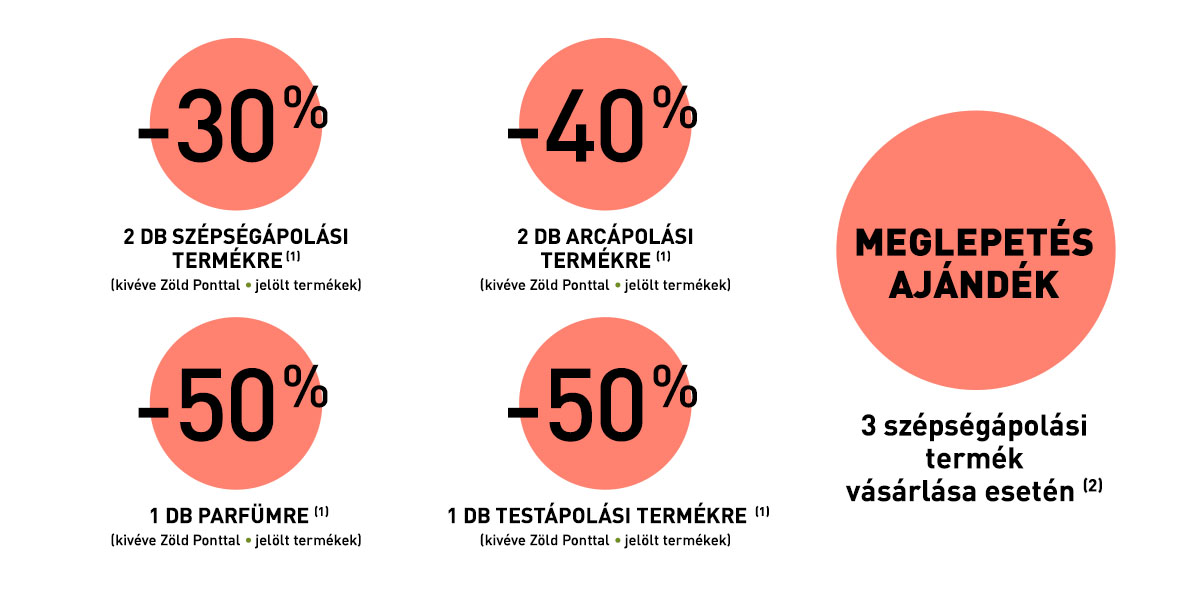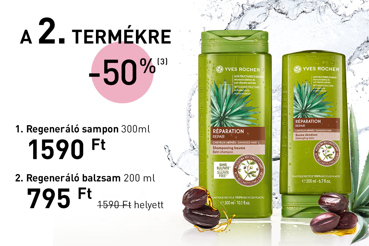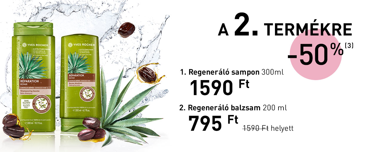 (3) Az ajánlat más kedvezményekkel nem összevonható. Az ajánlat a Növényi hajápolás samponjaira és balzsamjaira vonatkozik. 50% kedvezmény a második alacsonyabb vagy azonos árú termékre (sampon vagy balzsam).