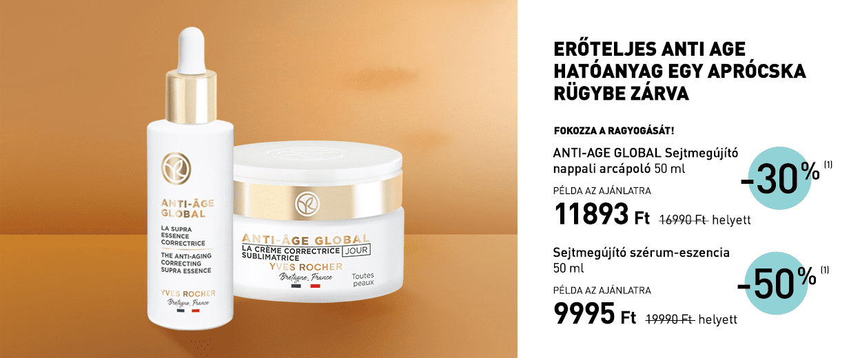 (1) Az Yves Rocher Hungary Kft. által ajánlott eredeti, nem akciós fogyasztói árakból. Az ajánlat más kedvezményekkel nem összevonható, nem vonatkozik csomagokra, csomagolóanyagokra, adventi kalendáriumra és ajándékutalványra.