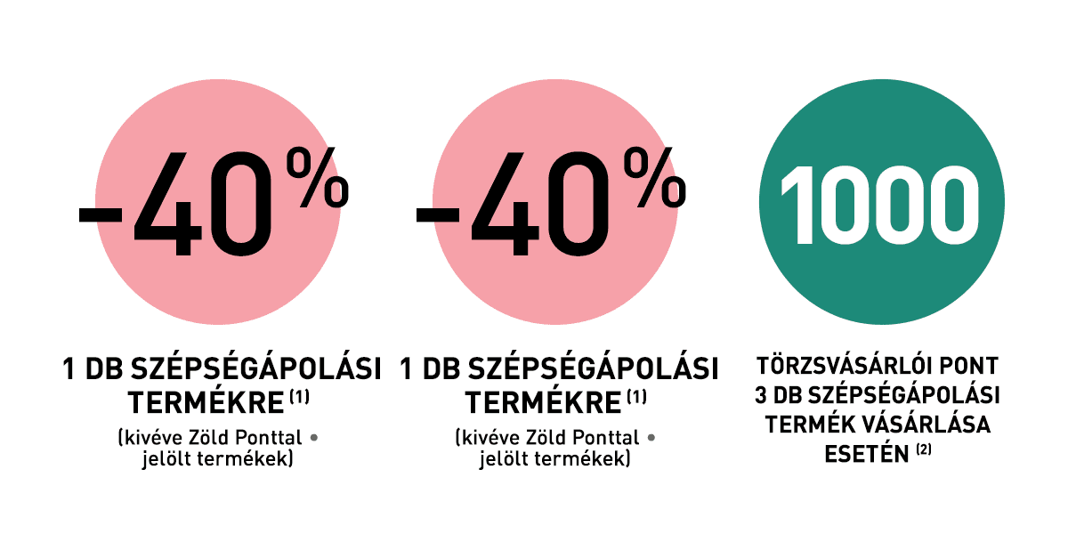 (2) Ajándék 1000 törzsvásárlói pontot írunk jóvá a vásárlásért járó pontokon felül 3 db Ön által választott szépségápolási termék vásárlása esetén vásárlónként egy alkalommal.