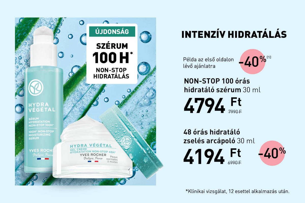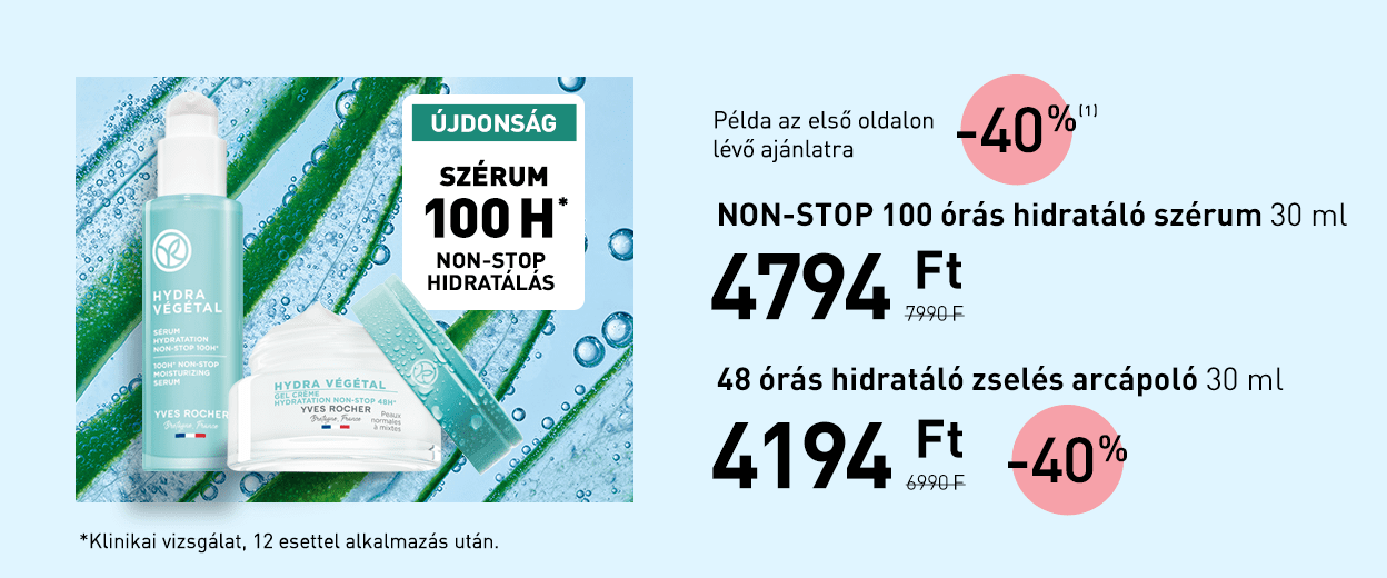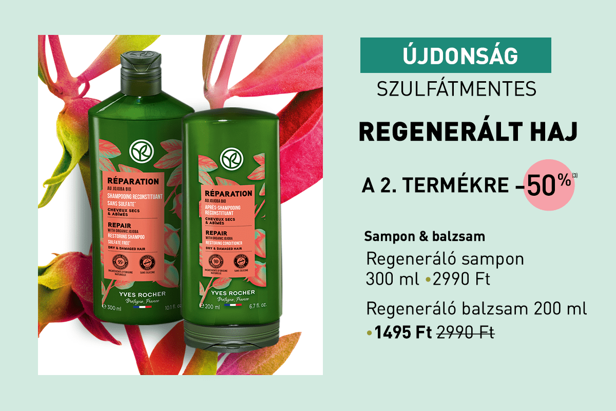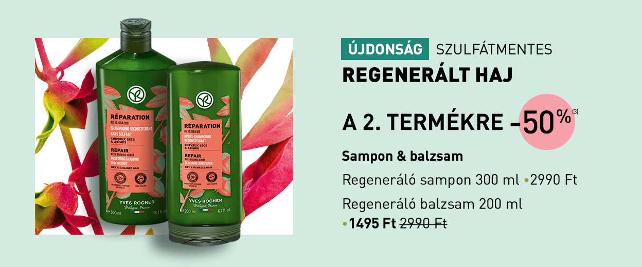 (1) Az Yves Rocher Hungary Kft. által ajánlott eredeti, nem akciós fogyasztói árakból. Az ajánlat más kedvezményekkel nem összevonható és nem vonatkozik a Zöld Ponttal jelölt termékekre.