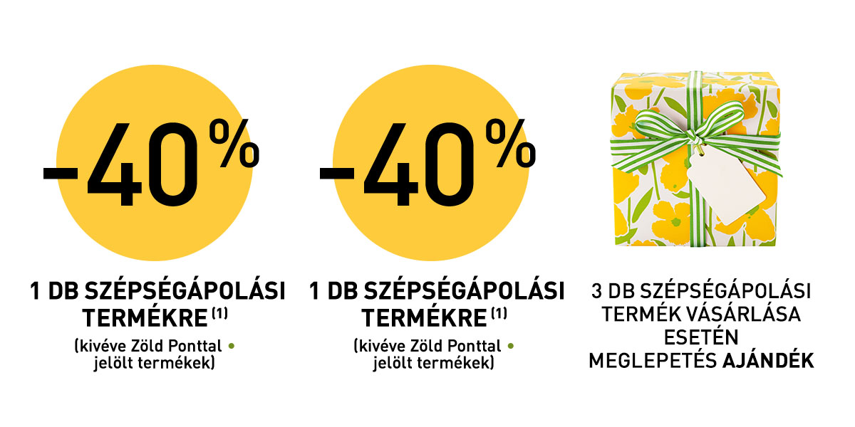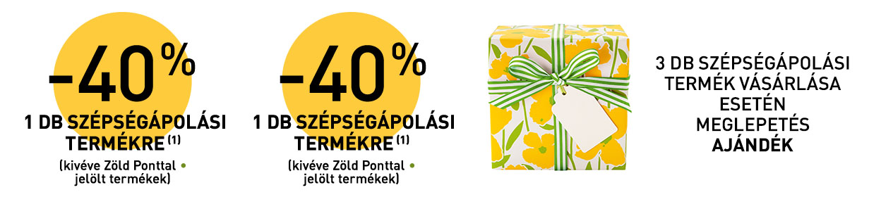 (2) Meglepetés ajándék legalább 3 db Ön által választott szépségápolási termék vásárlása esetén vásárlónként egy alkalommal. Más ajánlattal nem összevonható.