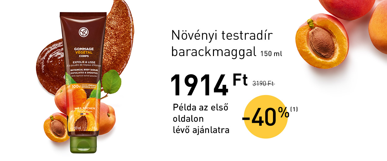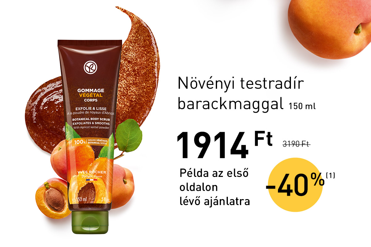 (1) Az Yves Rocher Hungary Kft. által ajánlott eredeti, nem akciós fogyasztói árakból. Az ajánlat más kedvezményekkel nem összevonható és nem vonatkozik a Zöld Ponttal jelölt termékekre.