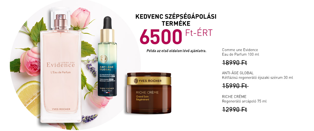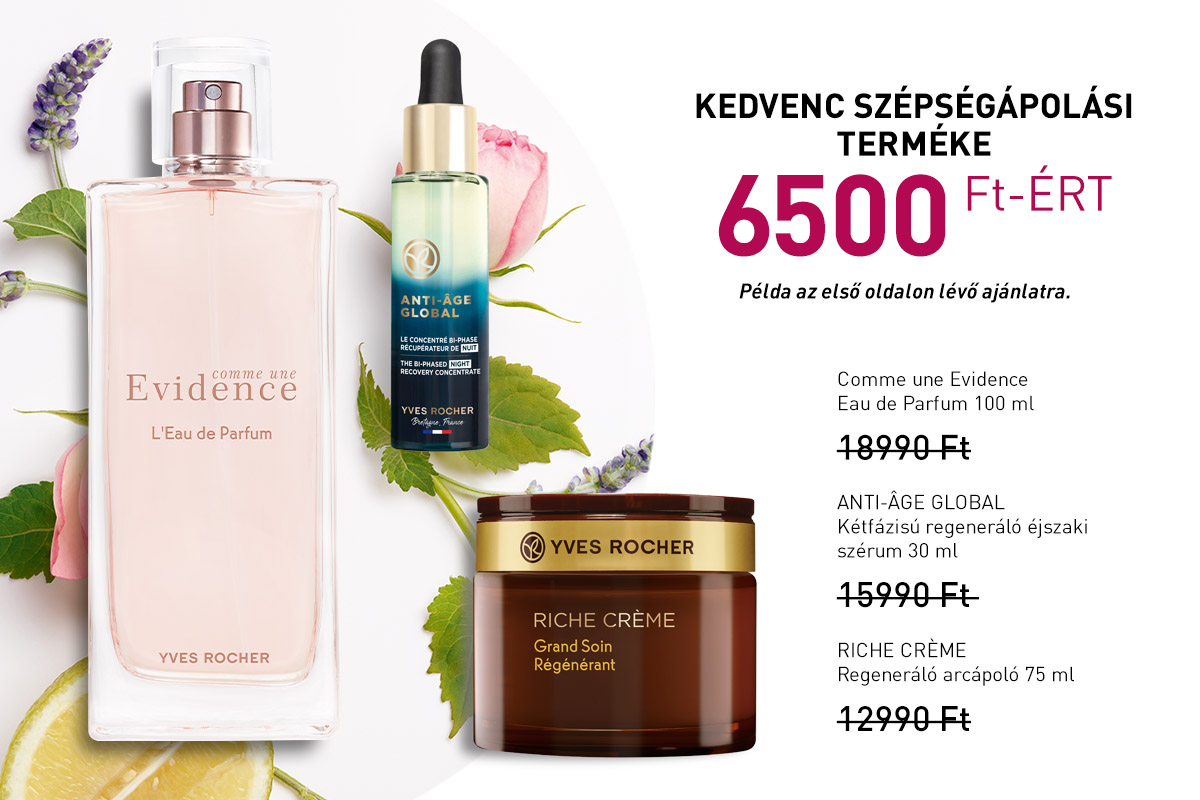 (1) Az Yves Rocher Hungary Kft. által ajánlott eredeti, nem akciós fogyasztói árakból. Az ajánlat más kedvezményekkel nem összevonható és nem vonatkozik a Zöld Ponttal jelölt termékekre.