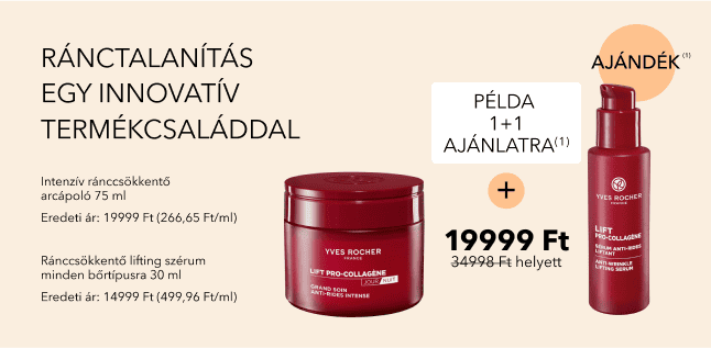 (1) Amennyiben egy darab szépségápolási terméket vásárol teljes fogyasztói áron, a második terméket ajándékba adjuk. Más kedvezményekkel nem összevonható, nem vonatkozik csomagokra, csomagolóanyagokra, adventi kalendáriumra és ajándékutalványra és árrés stopos termékre. További részletekről érdeklődjön Szépségtanácsadóinknál.