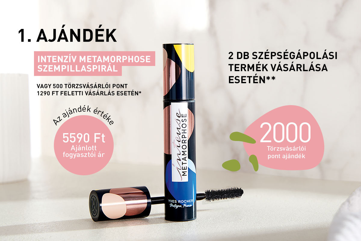 *Az ajándék szempillaspirál legalább 1290 Ft feletti szépségápolási termék vásárlása esetén adható vásárlónként egy alkalommal a készlet erejéig, vagy az 1290 Ft feletti vásárlás esetén járó szempillaspirál helyett ajándék 500 törzsvásárlói pont kérhető, melyet a vásárlás után írunk jóvá. Az ajánlat más kedvezményekkel nem összevonható.