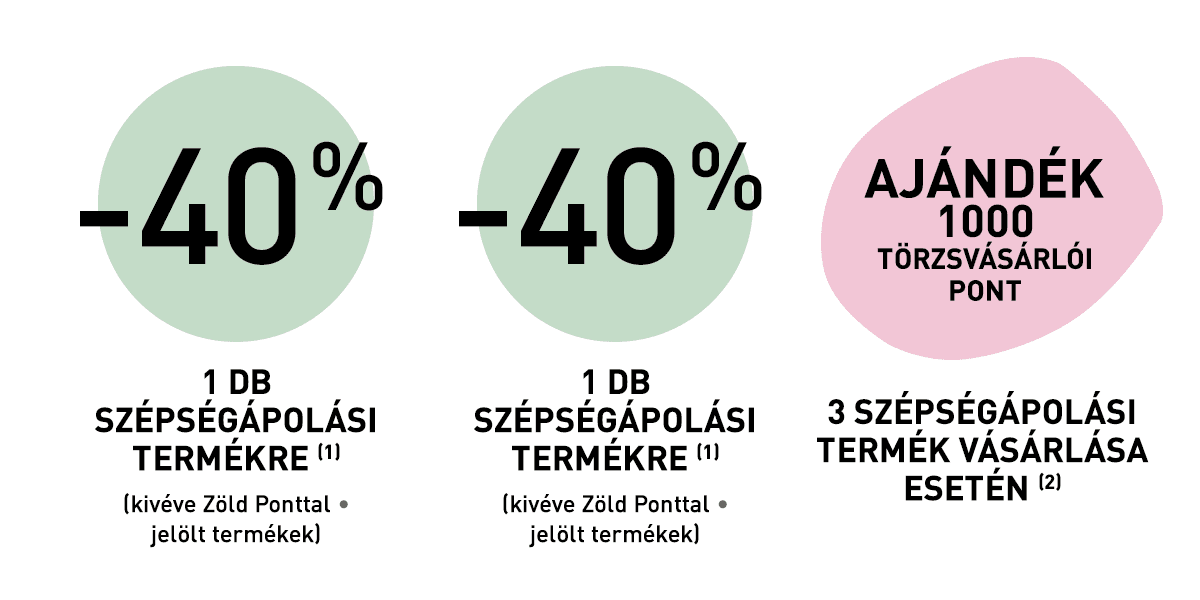 A vásárlásért járó pontokat a vásárlás után írjuk jóvá, és a következő vásárlás alkalmával lehet felhasználni. A feltüntetett termékárak változtatásának jogát fenntartjuk. A feltüntetett termékárak (pl.: Ft/ml) matematikailag kerekítésre kerültek.