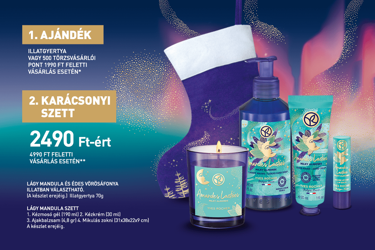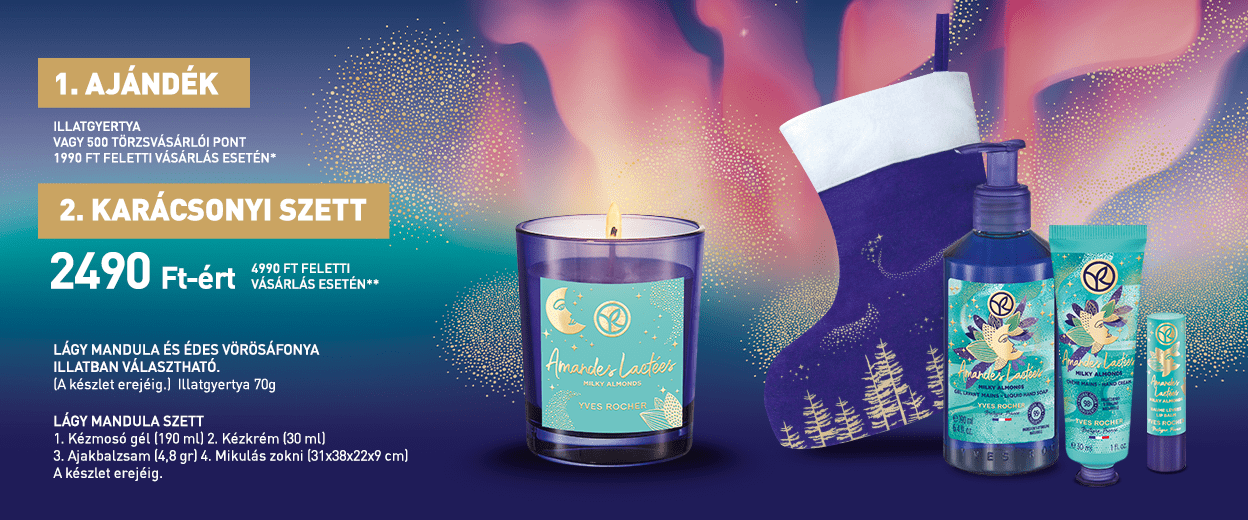 *Az ajándék illatgyertya legalább 1990 Ft feletti szépségápolási termék vásárlása esetén adható vásárlónként egy alkalommal a készlet erejéig, vagy az 1990 Ft feletti vásárlás esetén járó illatgyertya helyett ajándék 500 törzsvásárlói pont kérhető, melyet a vásárlás után írunk jóvá. Az ajánlat más kedvezményekkel nem összevonható.