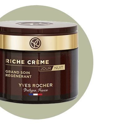 Az Yves Rocher szakértői 30 ritka olajat választottak ki jelentős öregedésgátló hatása miatt. Ma a Riche Créme termékek összetételét ráadásul 1000 rózsa olajával dúsítják, ami segíti a bőr regenerálódását és táplálását. A damaszcén rózsából származó rózsaszín viasz ritka, és hosszú betakarítással és precíz extrakciós eljárással nyerik. Egy kilogramm rózsaszín viaszhoz egy tonna ilyen virágra van szükség. A jojobaolajjal együtt a Riche Créme termékcsalád egyik legjelentősebb összetevőjét alkotja.